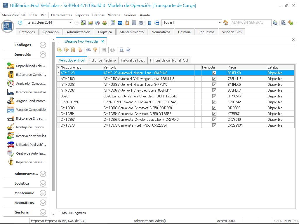 El Pool vehicularnos ayuda a poder llevar un control como prestamos temporales de nuestros vehículos, por lo general las empresas cuentan con un grupo de vehículos que utilizan para este fin, solo tenemos que ingresar al sistema los vehículos que pertenecen al Pool. Es importante comentar que al estar un vehículo aquí el sistema no lo presentara en el módulo de Asignación de conductores que corresponde a la opción de resguardo formal de un vehículo en el sistema.