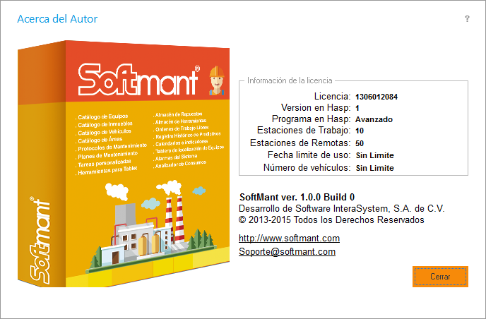 En esta pantalla podemos revisar el numero de licencia de uso del sistema Softmant.