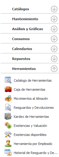Este módulo lleva el control detallado de resguardos y devoluciones de herramientas por parte de nuestros empleados técnicos se puede registrar herramienta simple y con número de serie como son los equipos de medición y calibración. El sistema lleva el detalle del estado en que entrego la herramienta y como se regresó se puede registrar herramienta que tenga un desgaste como las brocas, hasta que ya llegué a su fin de vida útil y se dé baja del almacén. Se lleva un kardex detallado de movimientos entradas y salidas y otro para control de resguardos a diferencia del almacén de repuestos el de herramientas solo lleva la compra como movimiento de entrada los resguardos que son para ver quién tiene la herramienta y las salidas cuando se rompió, perdió, o salida por desgaste natural esos movimientos quedan como historia individual.
