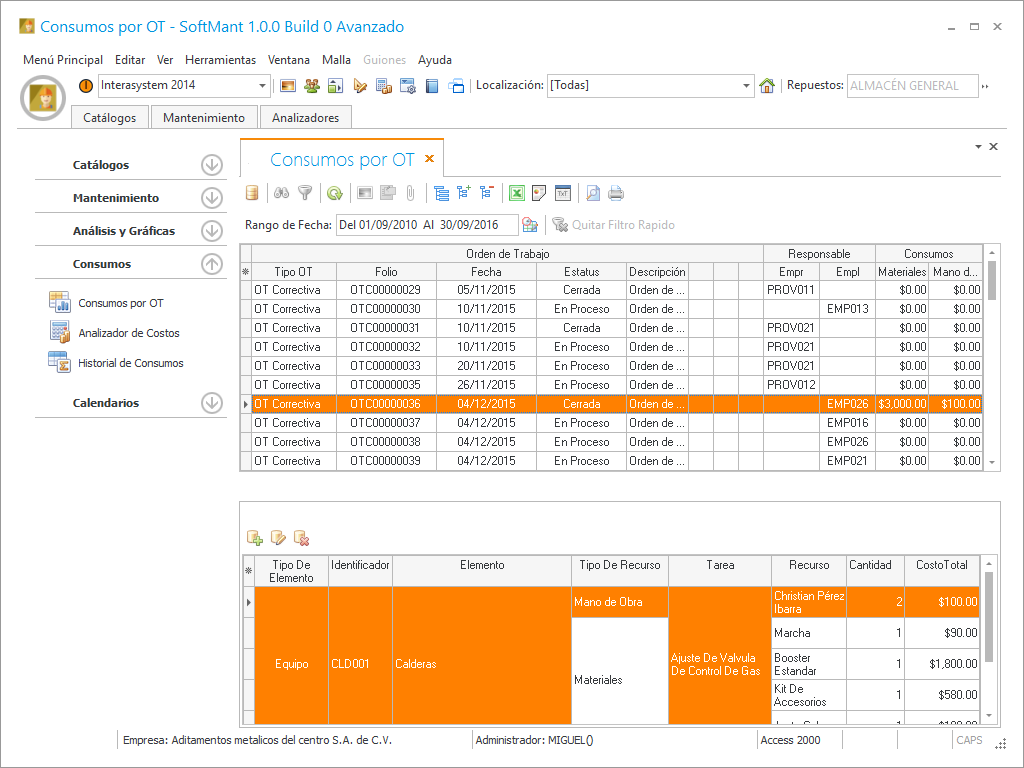 Consumos por OT