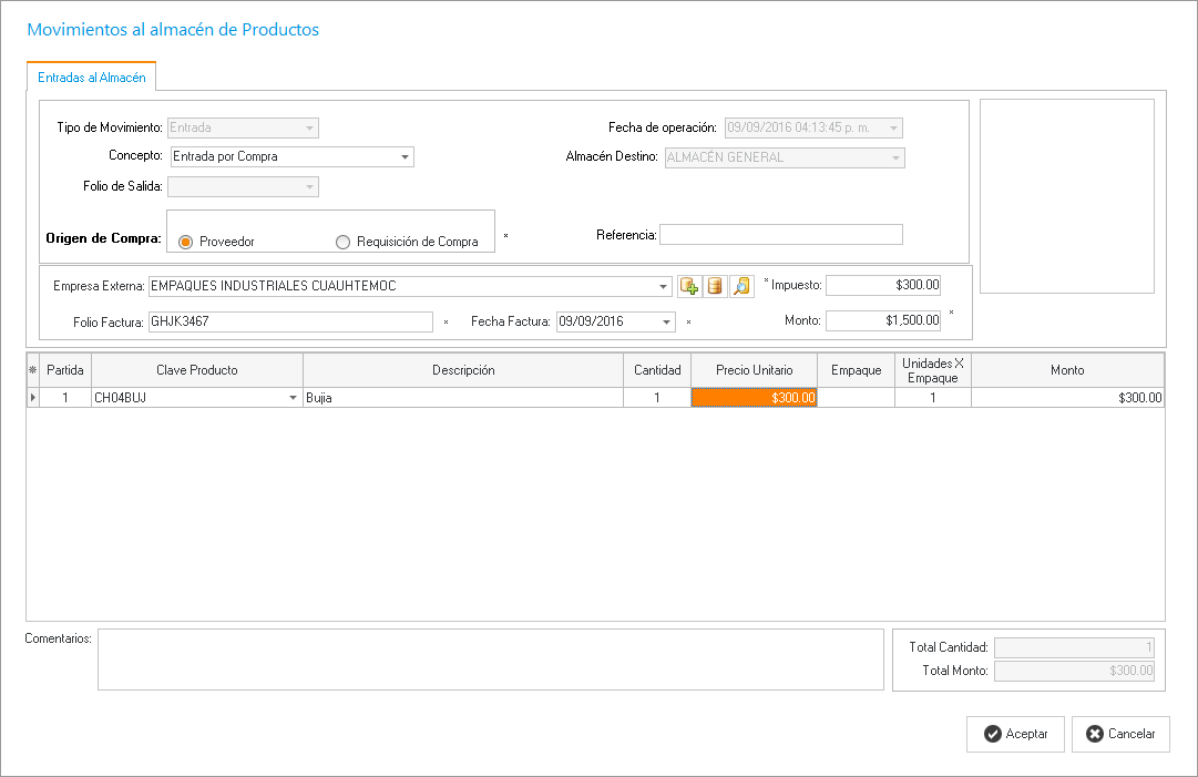 Entrada por Compra: Esta opción es para ir ingresando las facturas que el proveedor da cuando nos hace llegar nuestra mercancía.