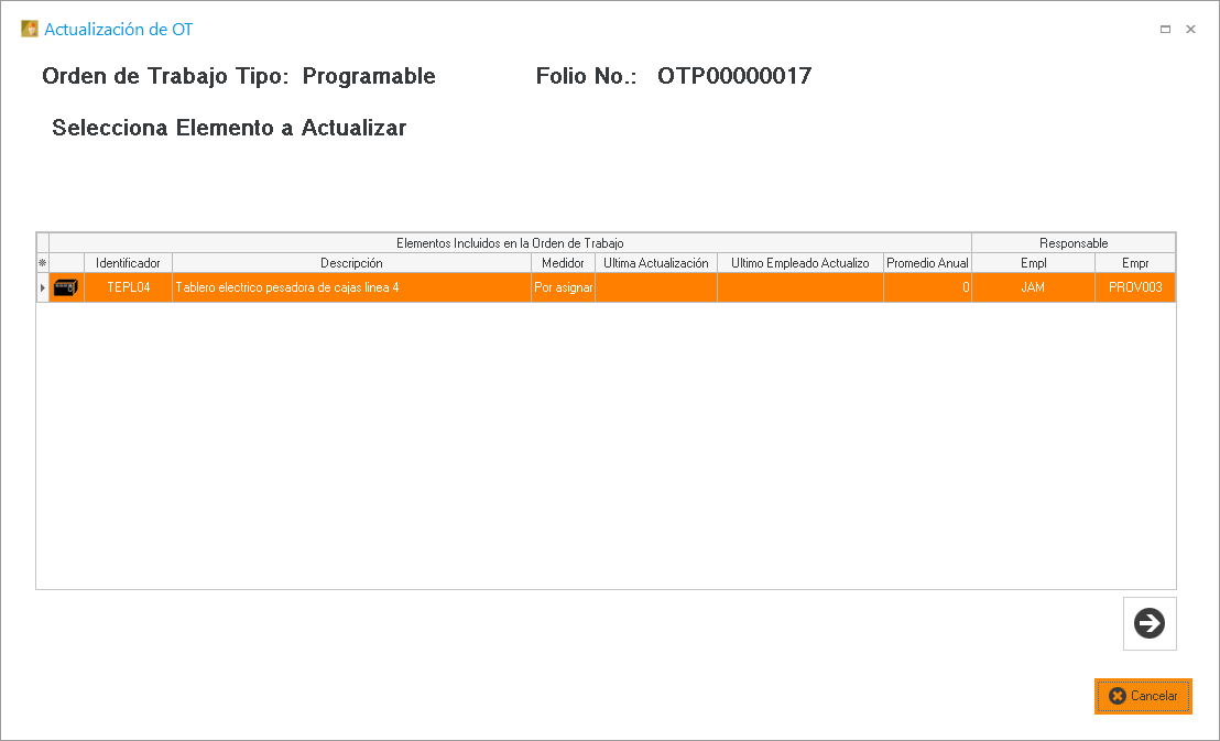 En la siguiente captura de pantalla se muestra la lista de elementos que contiene la OT.
