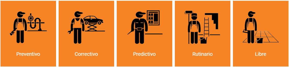 • Preventivo (Tareas Programables o libres) que son mis tareas de mantenimiento que se programan por un periodo de fecha o lectura de medidor este tipo de mantenimiento por lo general es proporcionado por el fabricante es el el que recomienda los periodo a ejecutar y el procedimiento a realizar.