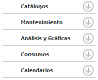 SoftMant está estructurado en varias secciones que nos facilitan el manejo del sistema, esta dividido en Catálogos, Mantenimiento, Análisis y Gráficas, Consumos, Calendarios.
