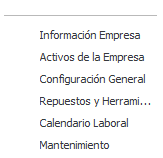 En la configuración general podremos indicarle los parámetros Mantenimientos para la realización de OT's, podrá agregar los almacenes que tiene, indicara los días que tiene hábiles, configuración de las mallas, si quiere que haya desfase en la empresa. etc.
