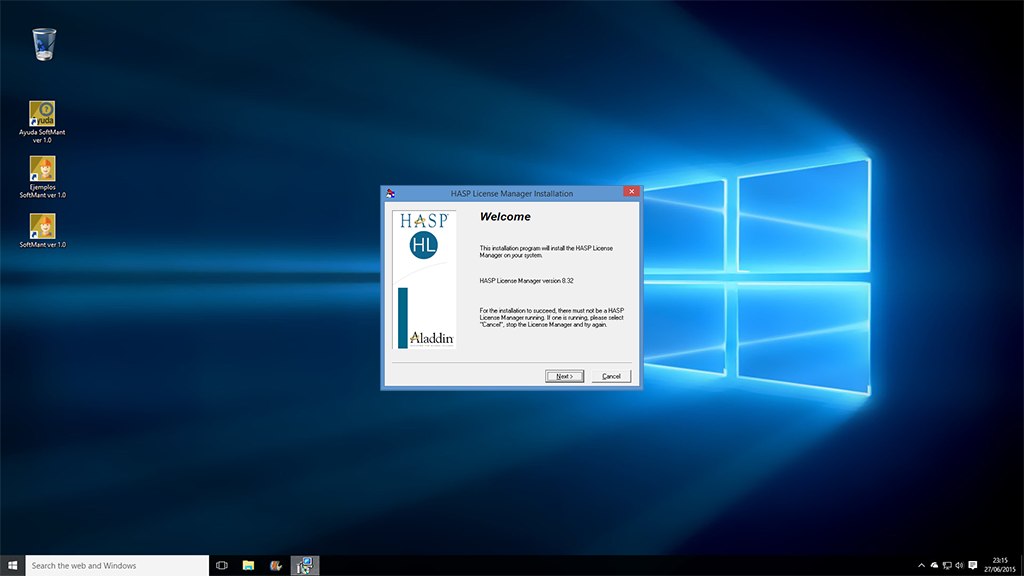 Cuando usted instaló SoftMant automáticamente se instalo un acceso directo a la aplicación Instalar Administrador de Licencias HASP localizado en la carpeta de Software InteraSystem del listado de programas del menú inicio, ejecute dicho programa y en instantes aparecerá la siguiente ventana: