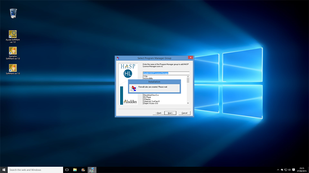 En adelante solo bastará dar Next > para que instalé todos los archivos y drivers necesarios para que funcione correctamente nuestro candado HASP.