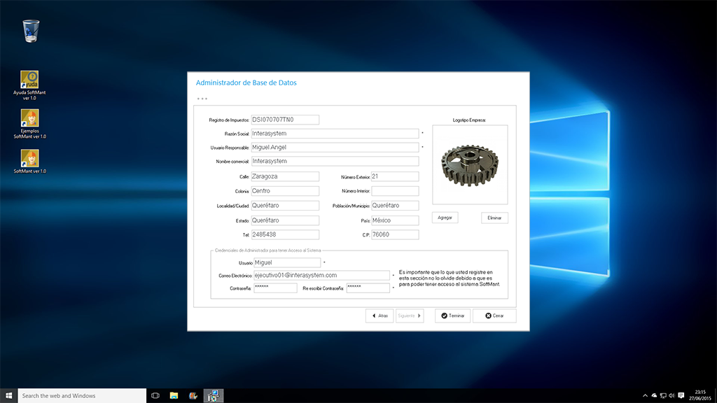 Paso 3. Registre la información de la empresa y tambien la información para acceder al sistema los cuales son un nombre del usuario, correo electronico y la contraseña.