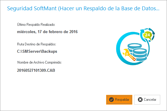 SoftMant permite al usuario decidir si desea respaldar la base de datos o bien restaurada, en este caso estamos viendo como respaldarla.