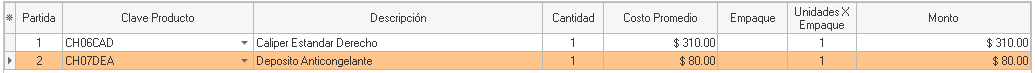 Después de hacer clic en Orden de Trabajo de Destino de Consumos se activara esta lista desplegable donde elegirá el folio de la OT. Cuando haya seleccionado folio nos mostrara los repuestos que se solicitaron en esa OT.