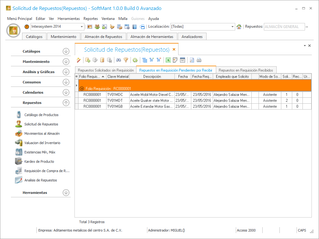 Esta es la pantalla principal de solicitud de repuestos procederemos seleccionar el criterio: