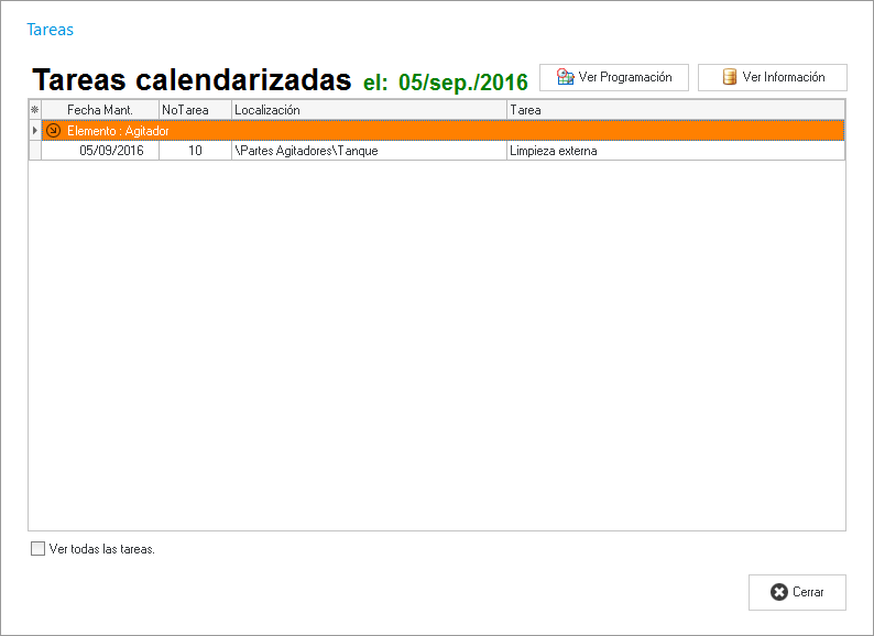 En esta ventana se muestra la tarea programada, aparece cuando le das clic en el calendario de mantenimiento.